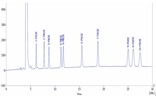 10种多溴联苯醚国家标准夹杂着盐溶液谱图:
