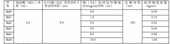 根据镉(Cd)规则根据盐溶液(0.01ug/ml),优级纯硫酸(HCL) ,0.1%镉(Cd)通用阐发 2 号化学制剂,去阳离子水(电阻器率≥10M欧姆)等化学制剂。