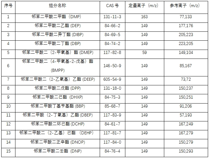 参照现行相干规范:GB 5009.271—2016《食物宁静国度规范 食物中邻苯二甲酸酯的测定》、GB 9685-2016《食物 宁静国度规范 食物打仗资料及成品用增加剂利用规范》、LS/T 6131-2018《粮油查验 动物油中邻苯二甲酸酯类化合物的测定》,本体例对食用油中的15种邻苯二甲酸酯类物资停止检测,样品经无机溶剂提取、污染、定容后,用GC-MS 6800气相色谱质谱联用仪停止精确的定性和定量测定。